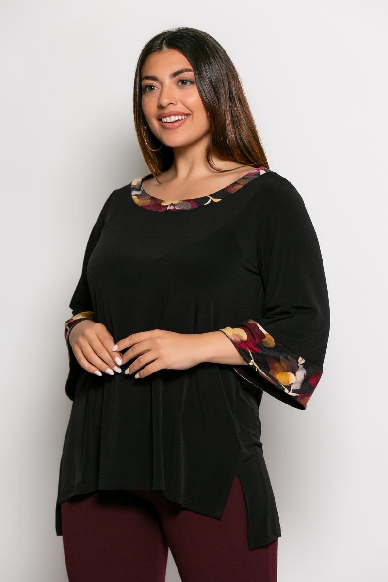 Μπλούζα ελαστική με φάσα εμπριμέ! Μπλούζα από εξαιρετικής ποιότητας ελαστικό jersey ύφασμα και ελληνικής κατασκευής. Έχει στρογγυλή λαιμόκοψη και λεπτομέρεια φάσα εμπριμέ στον λαιμό και στο τελείωμα στα μανίκια. Είναι από ελαστικό ύφασμα και άνετη γραμμή, για ένα ντύσιμο που χαρακτηρίζεται κυρίως από άνεση και στύλ.