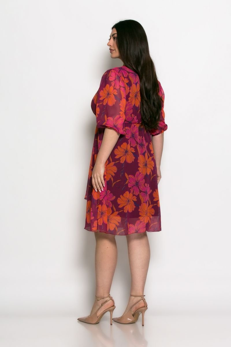 Φόρεμα Floral Dreams Midi Με Βολάν Πορτοκαλί Μωβ