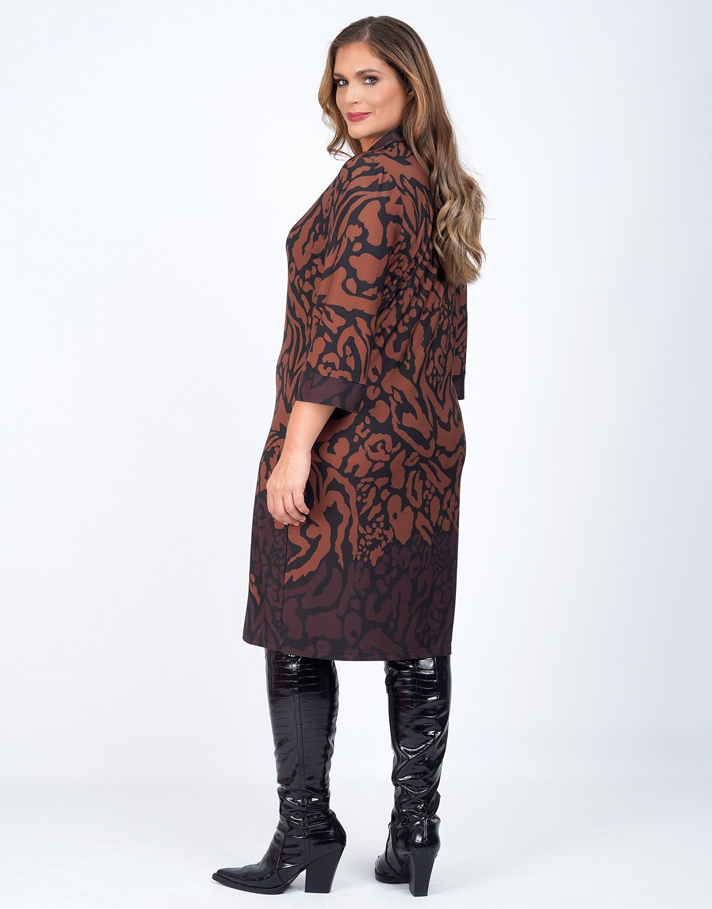 Εμπριμέ, jersey φόρεμα με ψηφιακό τύπωμα, τρουακάρ μανίκια και γιακά.