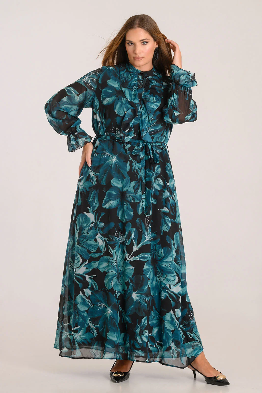 Φόρεμα Μουσελίνα Floral Κωδικός: 4-0950-1 Πράσινο