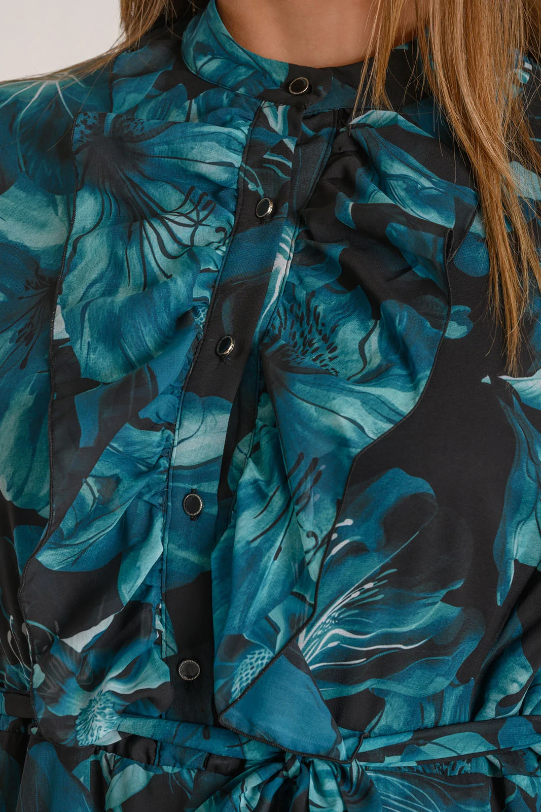 Φόρεμα μουσελίνα φλοράλ με κουμπάκια στο λαιμό.