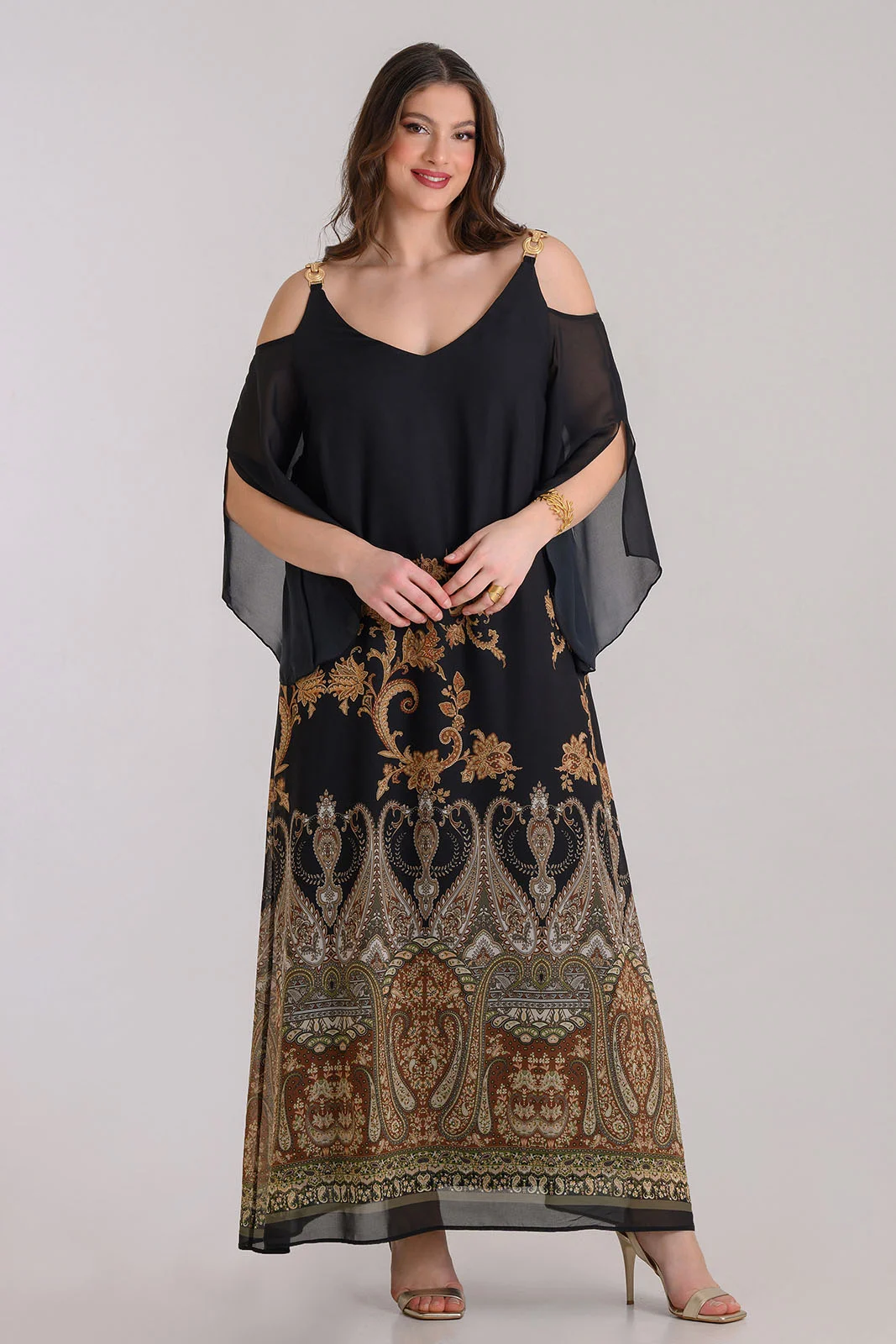 Φόρεμα Μουσελίνα Printed Μαύρο