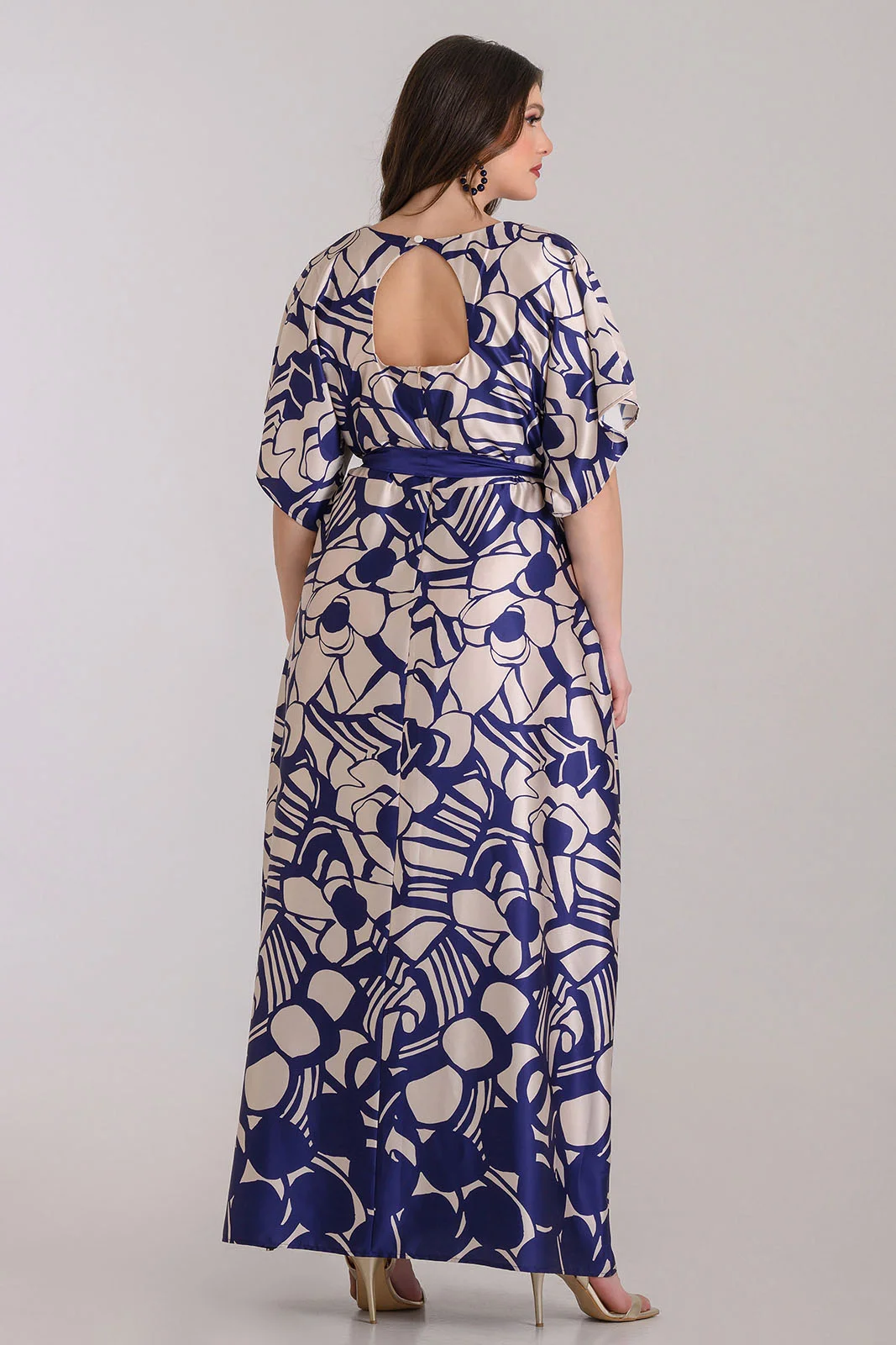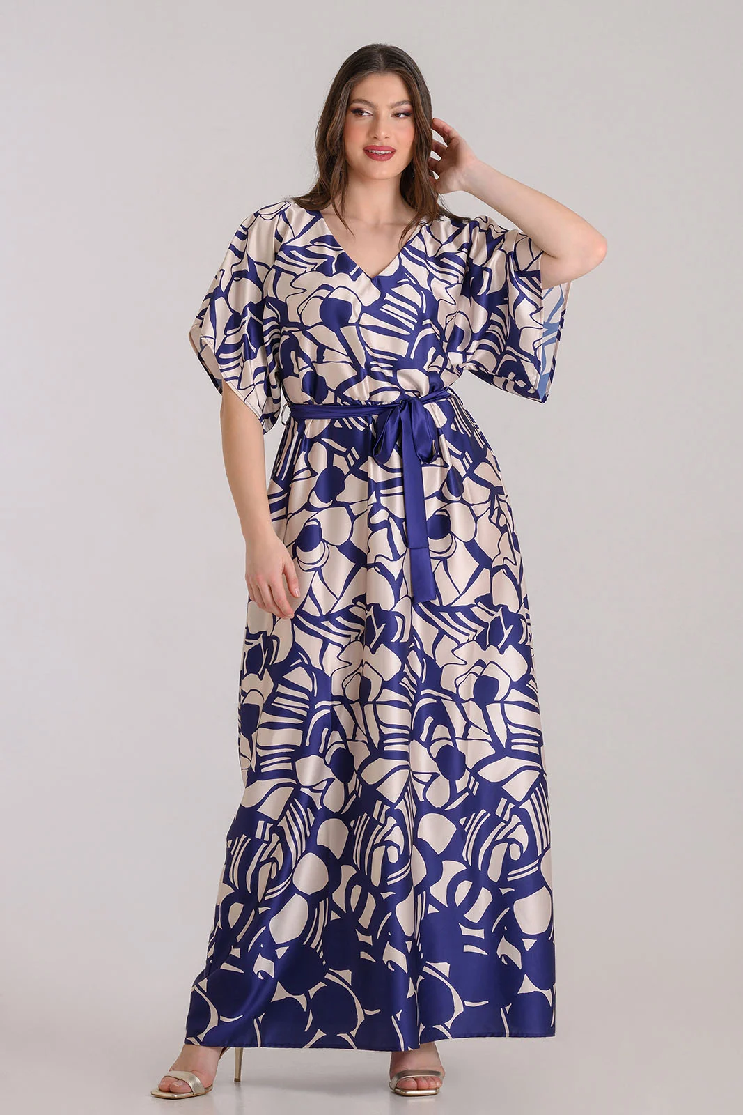 Φόρεμα από ύφασμα σατέν, με ζώνη και άνοιγμα στο πίσω μέρος.