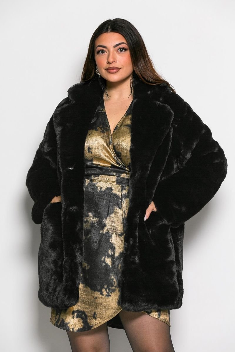 Πανωφόρι Γούνα! Παλτό οικολογική γούνα με πολύ απαλή υφή. Έχει εντυπωσιακό γιακά και μπροστά κλείνει με κούμπωμα. Εσωτερικά διαθέτει φόδρα και το ύφασμά του έχει πολύ απαλή υφή. Μπορεί να φορεθεί ανοιχτό ή να κλείσει και στο πλάι δεξιά και αριστερά έχει πρακτικές πλαϊνές τσέπες. Ένα φανταστικό κομμάτι για να εντυπωσιάσετε στις εμφανίσεις σας!