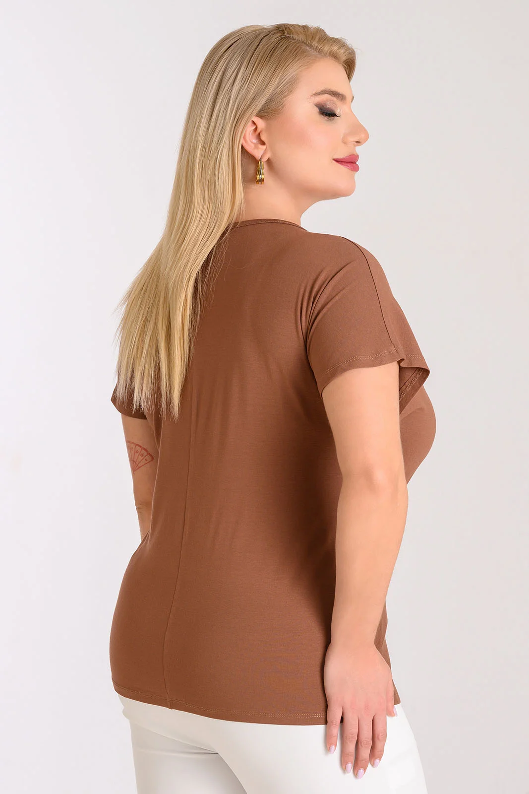 Μπλούζα ελαστική με σούρα Καφέ