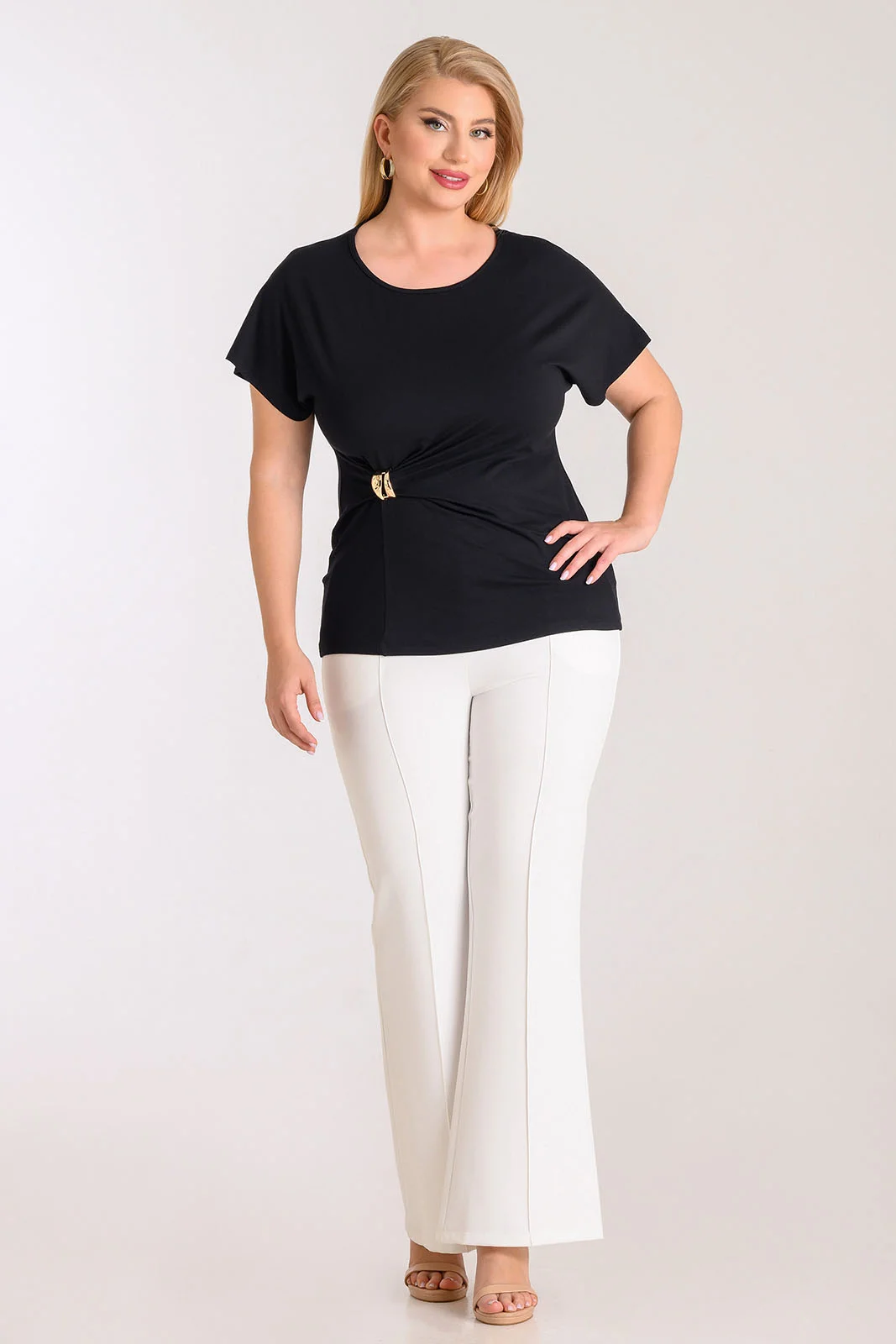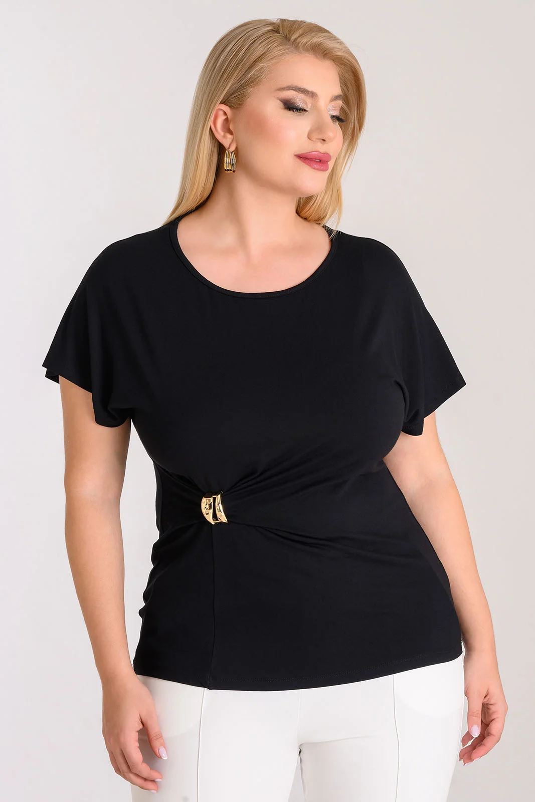 Μπλούζα ελαστική με χρυσή λεπτομέρεια και σούρα.