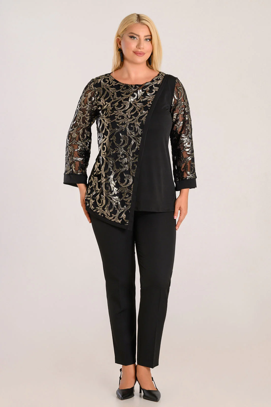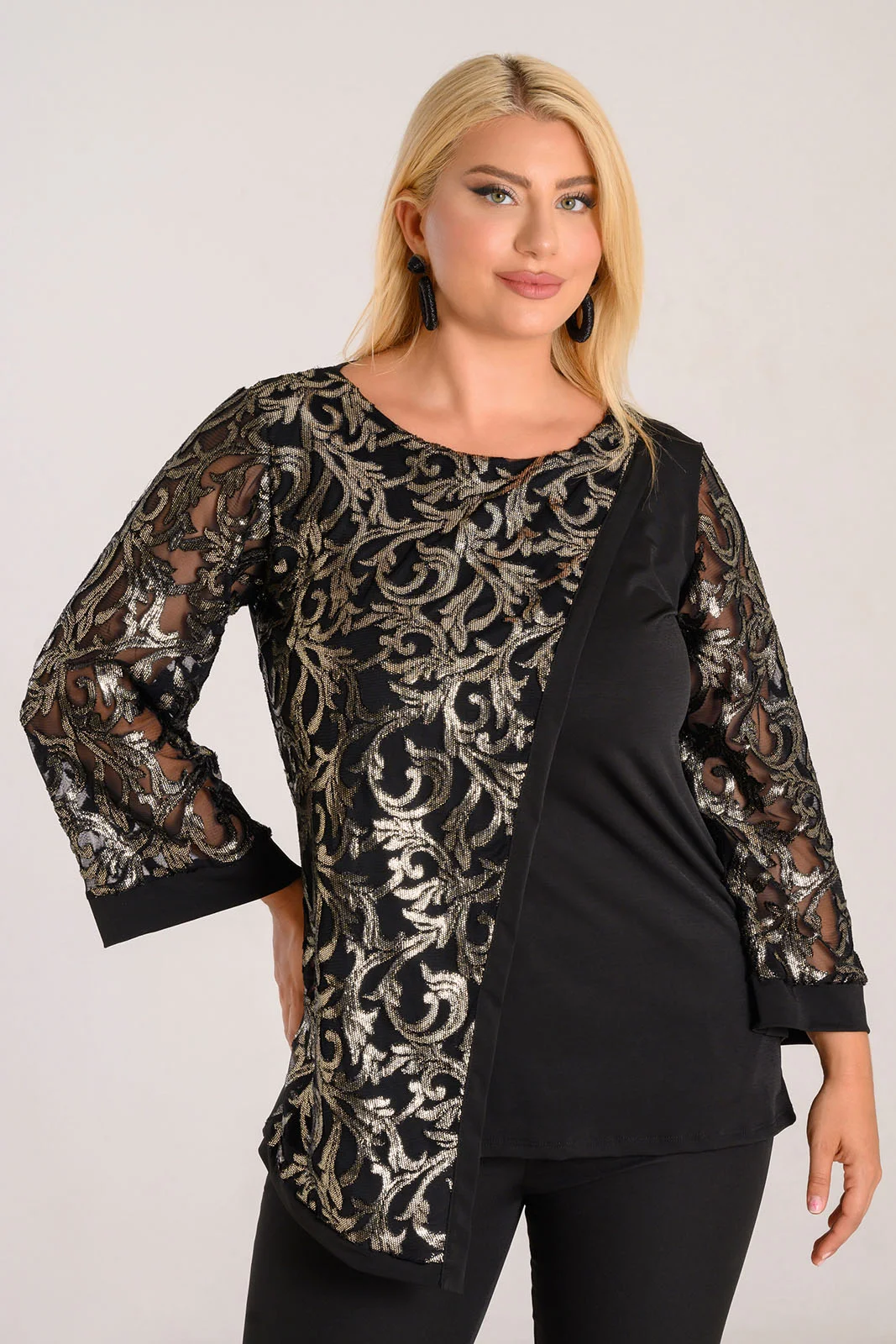 Μπλούζα με χρυσές λεπτομέρειες μπροκάρ ελαστικό.