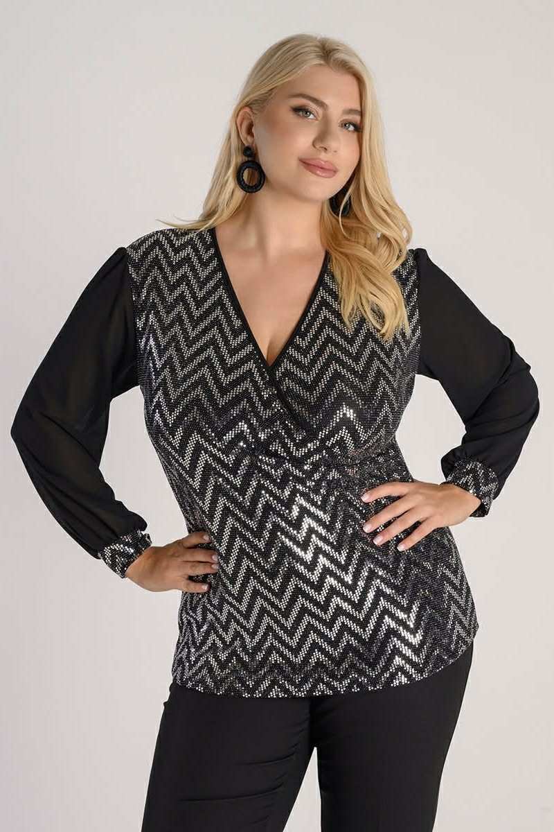 Μπλούζα λούρεξ κρουαζέ με μανίκια από διάφανη ζωρζέτα.