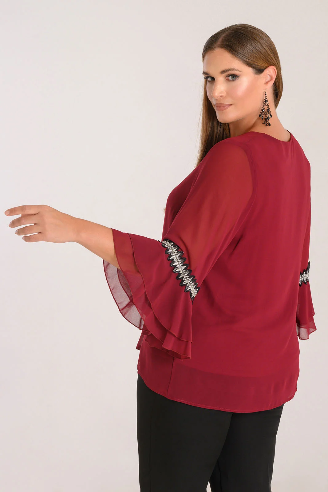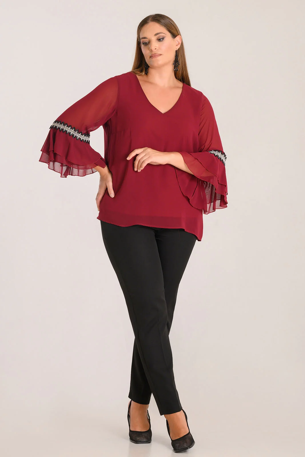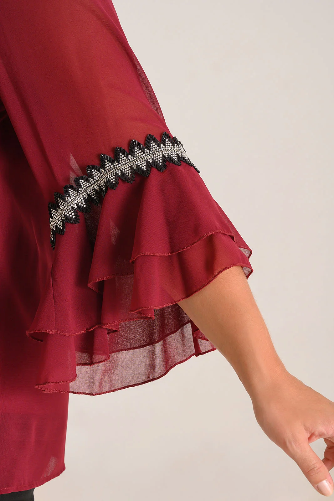 Μπλούζα μουσελίνα με λεπτομέρεια στρας στο μανίκι.