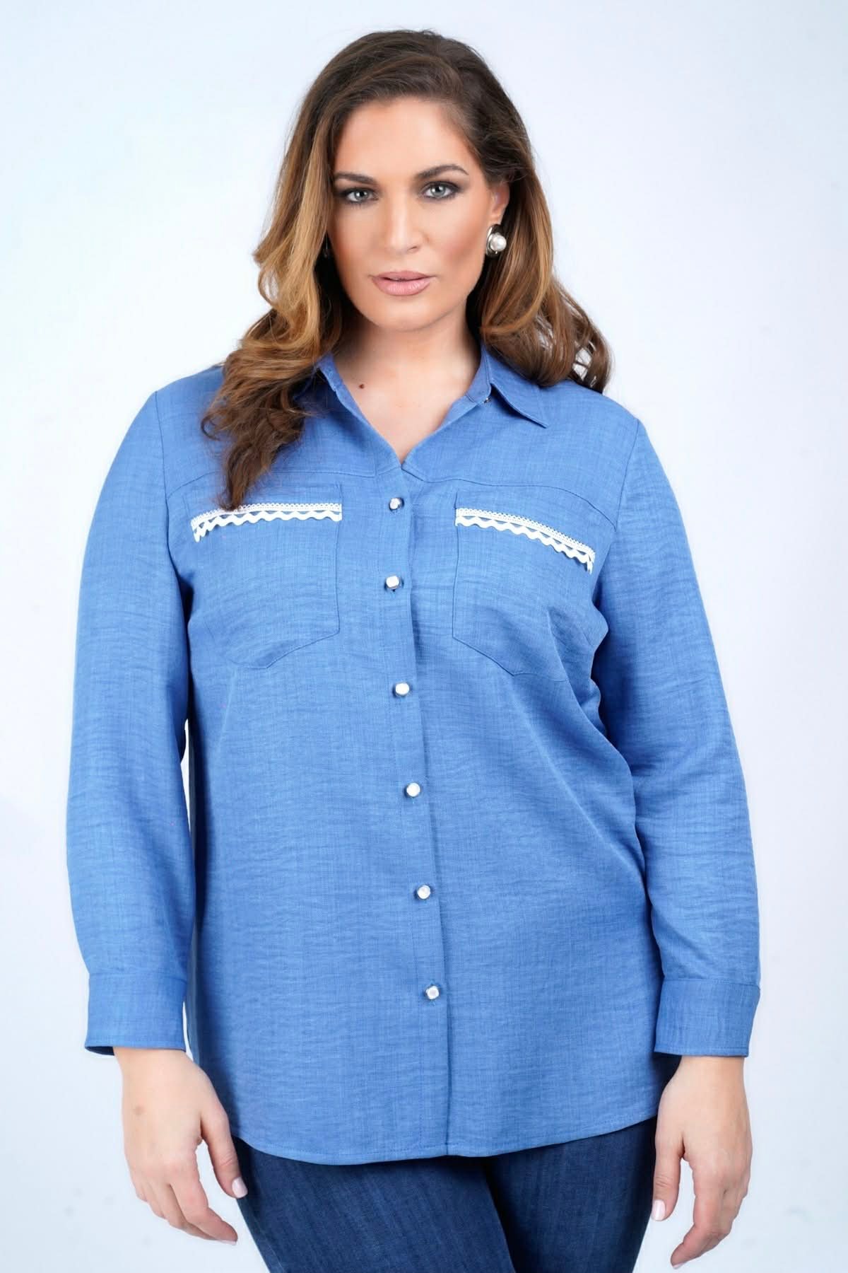 Πουκαμίσα τύπου τζιν με τρέσα δαντέλα στις τσέπες.