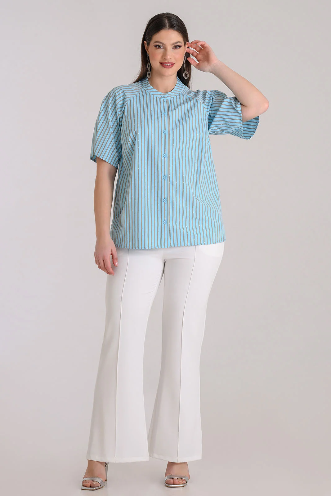 Πουκάμισο βαμβακερό ριγέ με στρας.