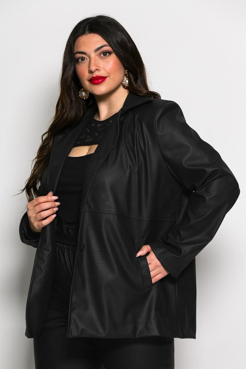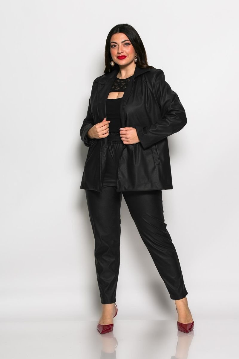 Σακάκι Wild Δερματίνη! Σακάκι από εξαιρετικής ποιότητας μαλακό ύφασμα δερματίνης και ελληνικής κατασκευής. Έχει ίσια γραμμή και στους ώμους διαθέτει βάτες. Έχει γιακά και κλείνει μέχρι επάνω με κουμπιά ντυμένα από το ίδιο ύφασμα. Στη μέση έχει ραφή, μια μοντέρνα πινελιά και εσωτερικά έχει φόδρα. Συνδιάζετε άψογα με το δερματίνη παντελόνι για ένα sexy leather look!