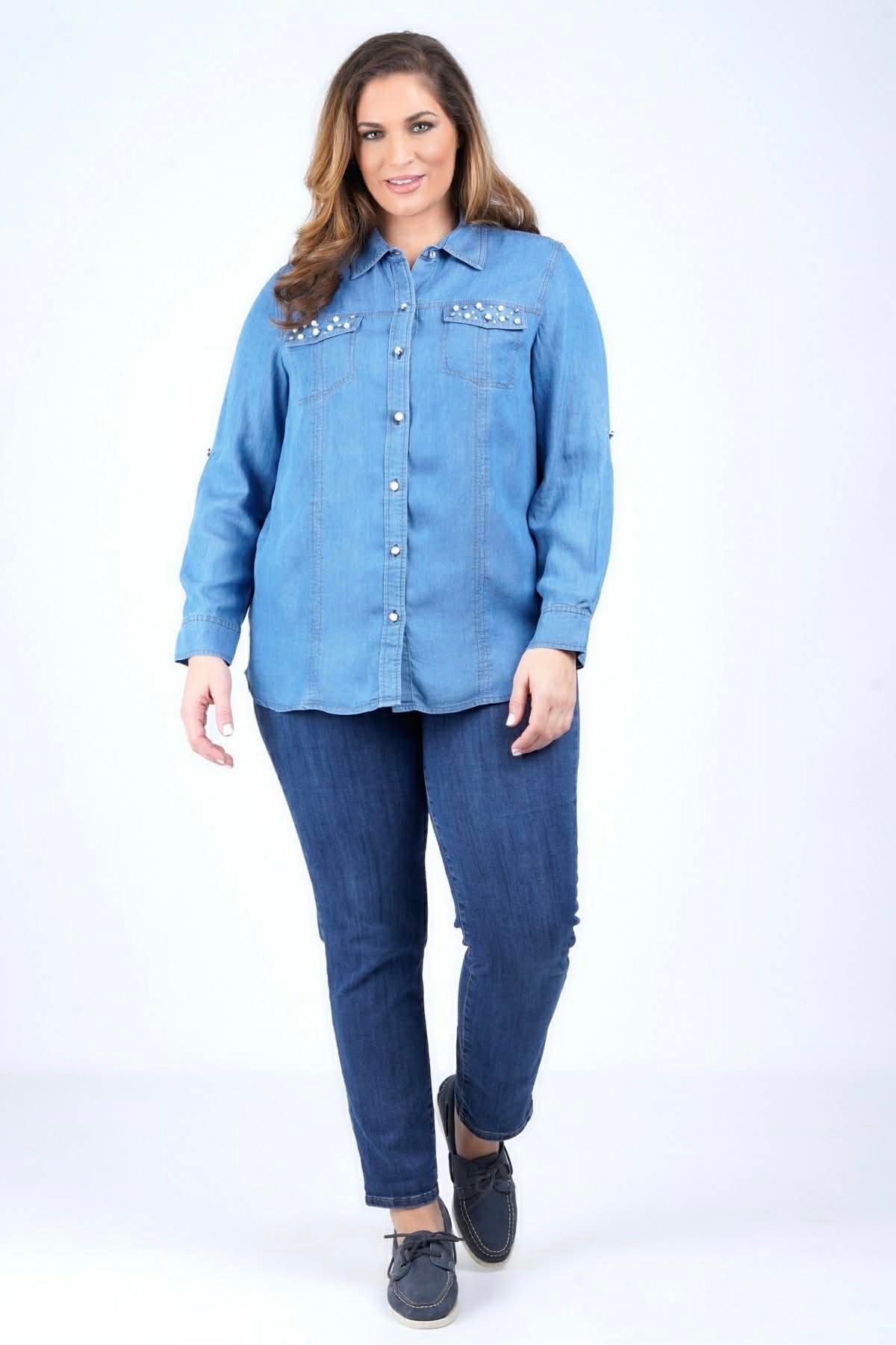 Τζιν πουκαμίσα με διακοσμητικές πέρλες & στρας στις τσέπες.